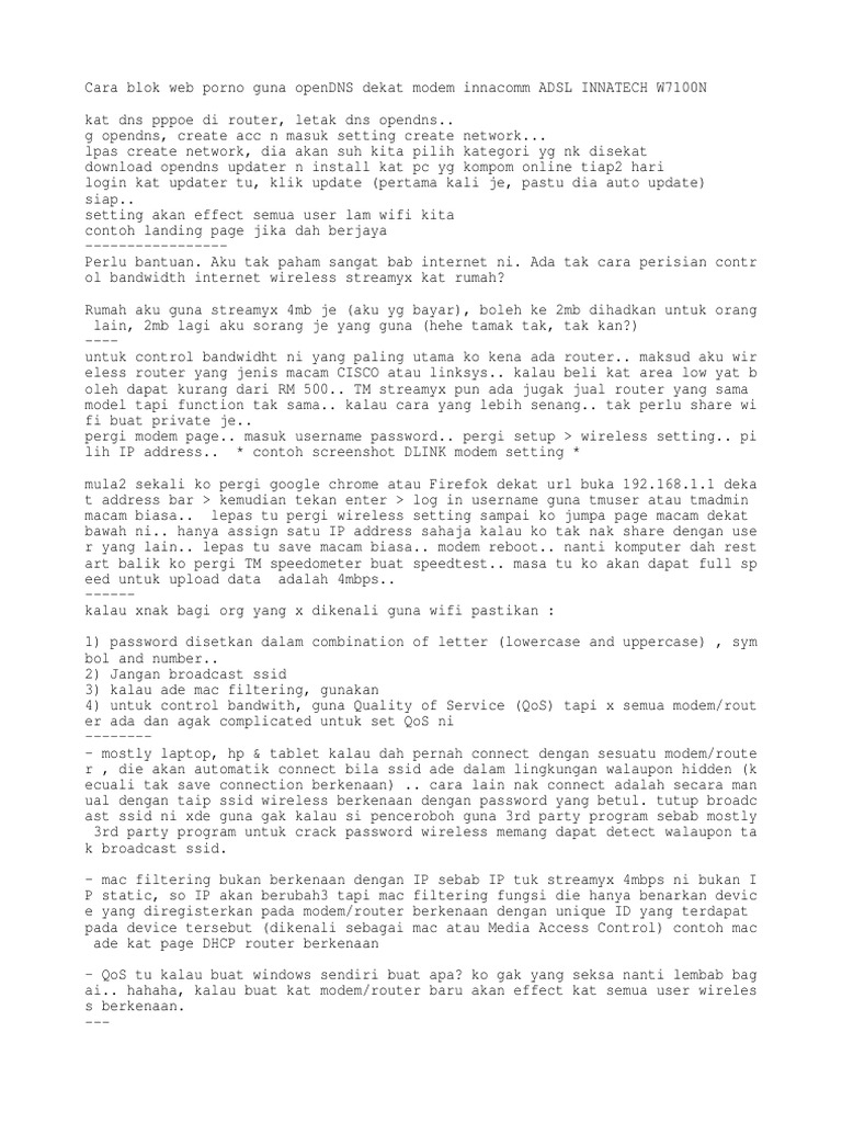 Related : Adsl-Innatech-W7100N User And Password / Tm Innacomm W7100n : In that case you should enter your own password but leave the and if you can't remember your password you may reset the modem/router back to factory default settings..