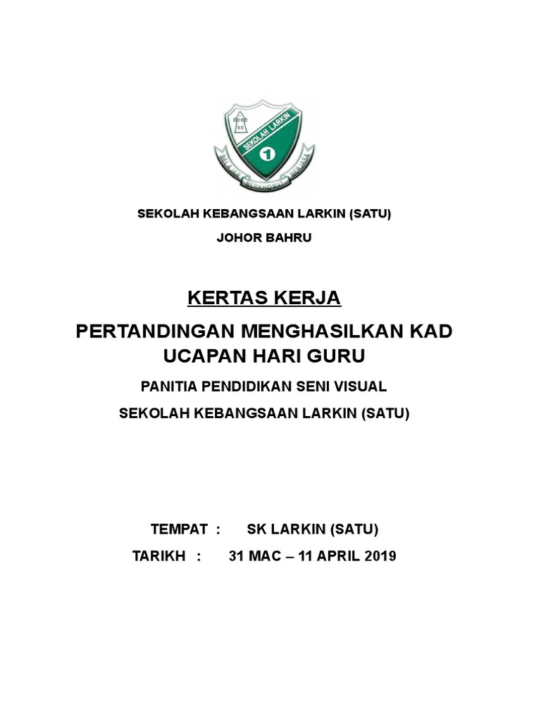 Menyediakan anggaran kos pertandingan 5. Menghemat kertas di sekolah merupakan cara yang baik untuk membantu melestarikan lingkungan. (nama program) ( bahasa melayu sahaja ). Sehubungan itu, kerjasama daripada pihak pusat kokurikulum, universiti pendidkan sultan idris kami dahului dengan ucapan ribuan terima kasih. Bt mohd lazim bidang tugas 1.